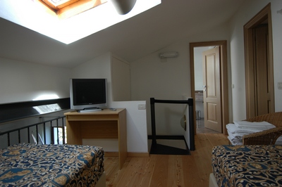 camera da letto soppalcata con due letti singoli (visibile già dal piano terra),