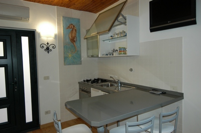 completamente attrezzato e un piccolo soggiorno con divano letto a due